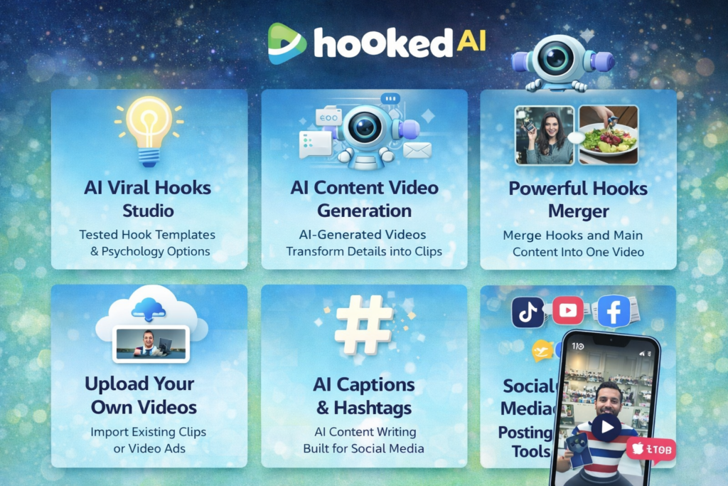 HookedAI is best understood as a hook-focused AI video marketing system rather than a broad editing platform. It is designed for people who need visibility, not just video files. That may sound like a small difference, but it changes the entire buying context.